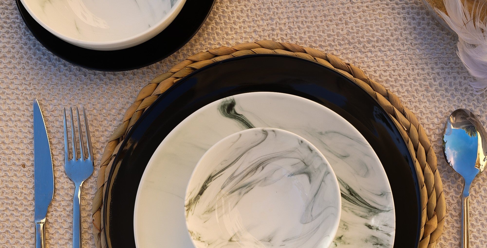 Whirl & Wood Bundle ( 32-piece porcelain dinner set + 2-pieces wooden tray set)