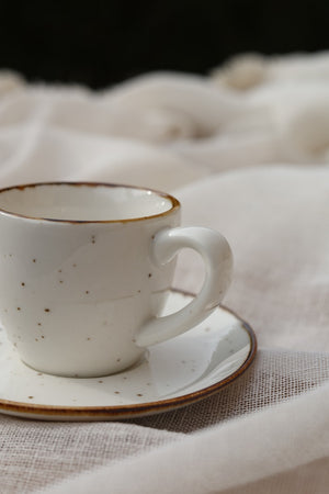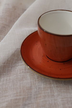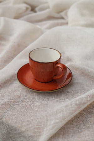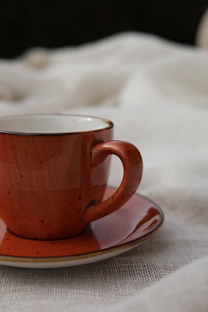 A compact piece with a fiery clay tone and smooth ivory interior the perfect espresso moment, elevated with artisanal charm.