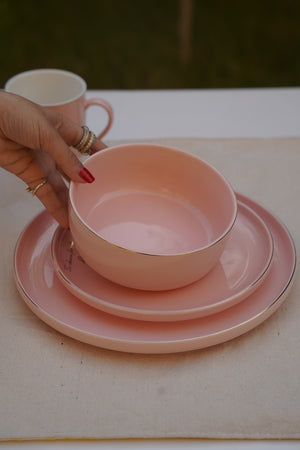 استمتع بتوازن مثالي بين الأناقة والسحر العصري مع طقم طعام بلَش إليجانس، المصمم ليُضفي لمسةً مميزة على لحظات طعامك بألوانه الباستيل الناعمة وتفاصيله الدقيقة. تصميم أنيق ومتناسق، مصنوع بشكل رئيسي من لون وردي باستيل ناعم مع لمسات ذهبية رقيقة ونقوش رقيقة. يتضمن الطقم تشكيلة متنوعة من الأطباق والأوعية والأكواب، جميعها بنفس نظام الألوان الأنيق.