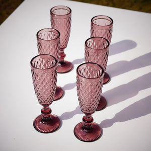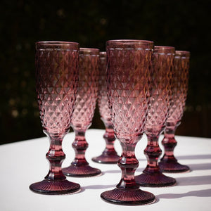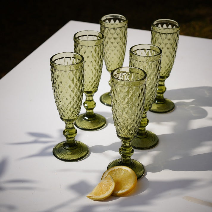 This stemmed glass set showcases a textured lattice design that catches the light beautifully and adds depth to any table setting. The sturdy stem and patterned bowl offer both visual interest and a confident grip, making it perfect for gatherings, brunches, or evening drinks. A statement piece that blends classic charm with modern elegance.