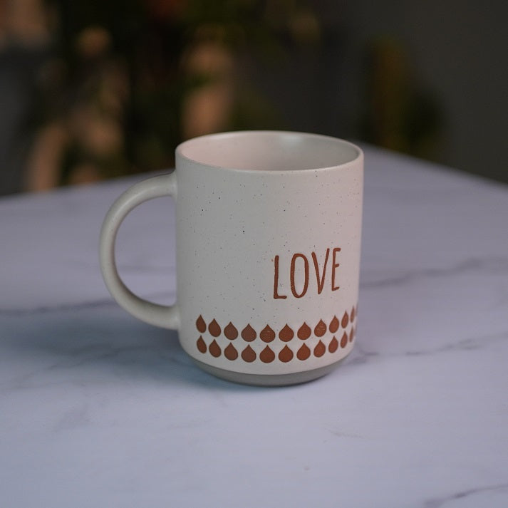 دع أفكارك تتجول مع كل رشفة. يجمع هذا الكوب بين التصميم البسيط وكلمات "حلم" و"سلام" و"حب"، ليذكرك يوميًا بالتوقف والتخيل.