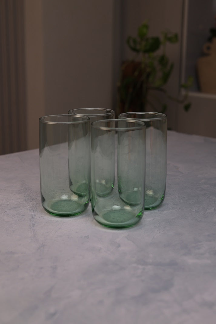 Soft green hues meet sleek cylindrical design in this elevated glass set. The subtle color adds a natural, refreshing feel to your table, while the clean shape keeps it beautifully versatile for any drink.