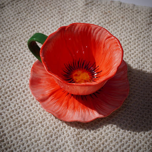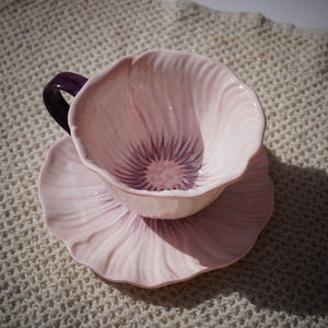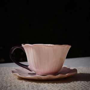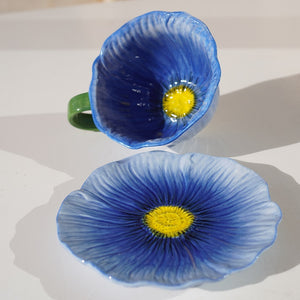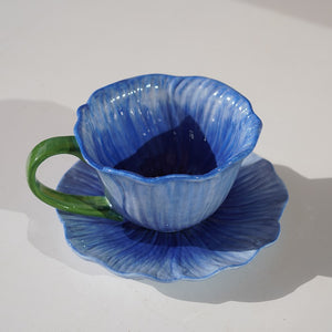 A delicate blue ceramic cup inspired by blooming petals, paired with a softly scalloped saucer. Designed to elevate slow mornings and cozy tea moments with effortless charm.