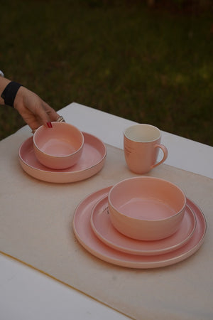 استمتع بتوازن مثالي بين الأناقة والسحر العصري مع طقم طعام بلَش إليجانس، المصمم ليُضفي لمسةً مميزة على لحظات طعامك بألوانه الباستيل الناعمة وتفاصيله الدقيقة. تصميم أنيق ومتناسق، مصنوع بشكل رئيسي من لون وردي باستيل ناعم مع لمسات ذهبية رقيقة ونقوش رقيقة. يتضمن الطقم تشكيلة متنوعة من الأطباق والأوعية والأكواب، جميعها بنفس نظام الألوان الأنيق.