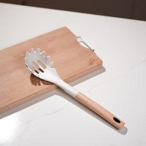 تم تصميم هذه الأداة بمغرفة واسعة وحواف مسننة لرفع المعكرونة بسهولة، وتضمن تقديمًا سلسًا مباشرة من الوعاء إلى طبقك.