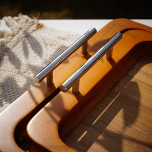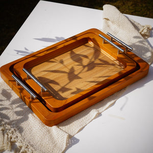 Maple Steel Handle Wooden Tray Set (2 pieces)