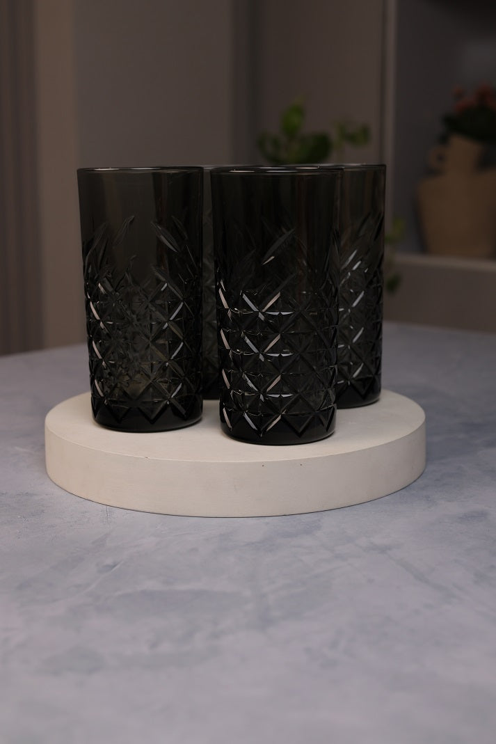 Bold, striking, and designed to elevate your drinkware. The Noir Highball set features deep geometric cuts with a smoky black finish, adding a luxurious touch to any dining setup.