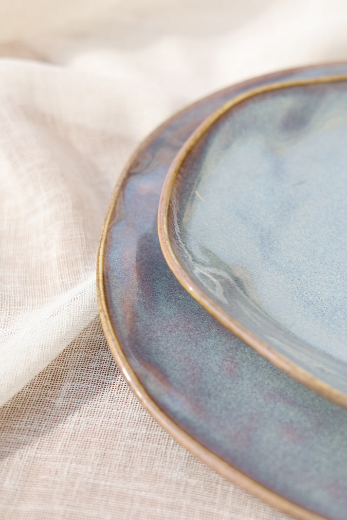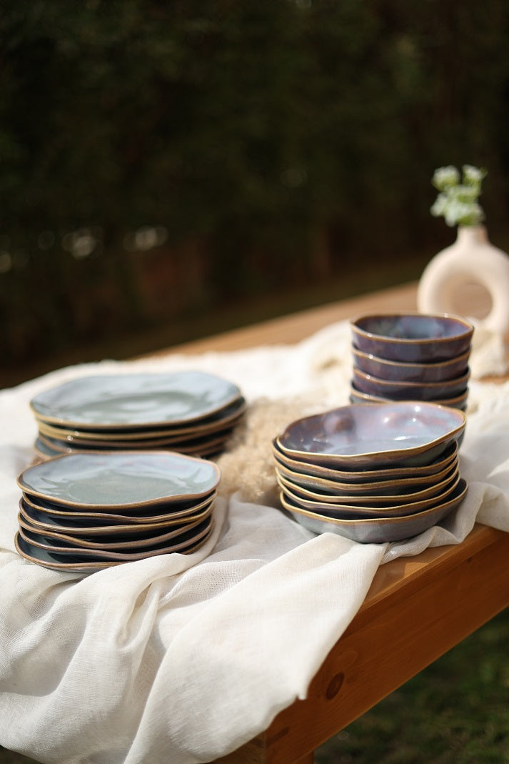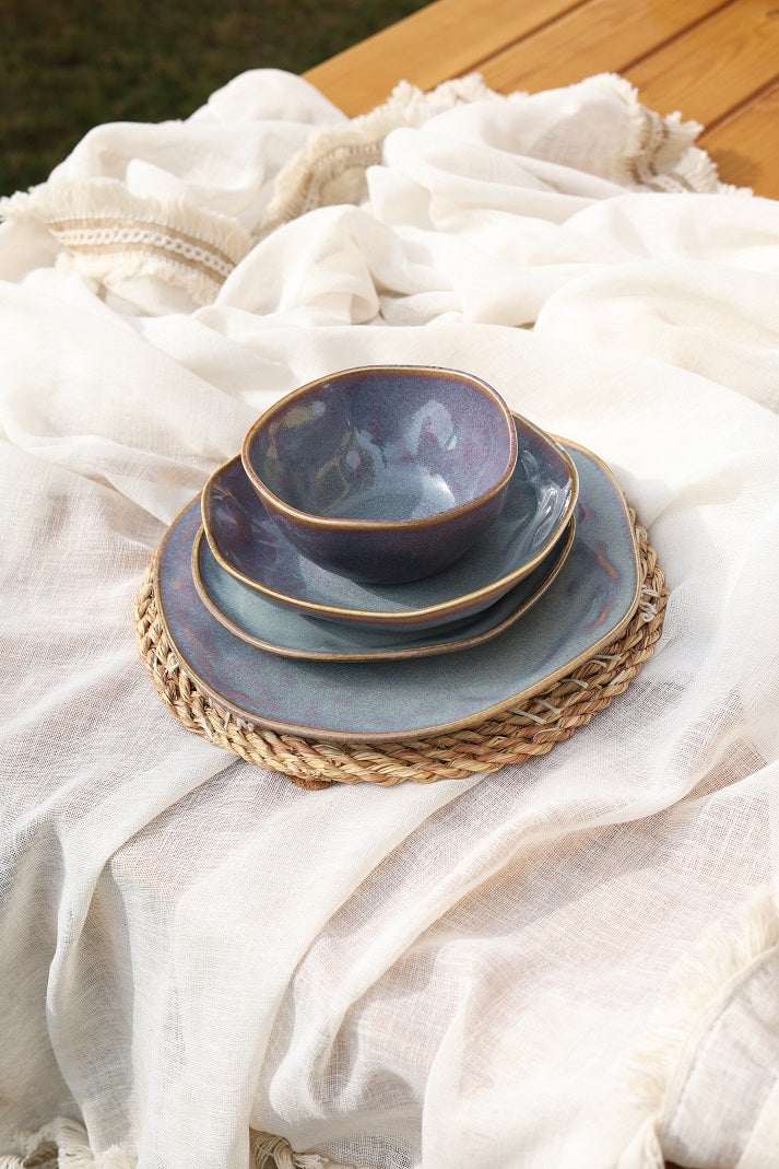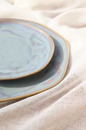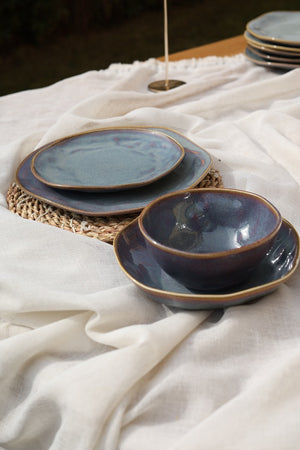 Soft ocean hues blended with hand-glazed texture, finished with a warm rim. A serene tablescape set that brings the calm of coastal mornings to every meal.