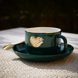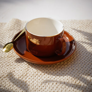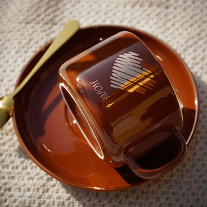 جرعتك اليومية من المرح. كوب سعة ٢٥٠ مل، مع صحن وملعقة متناسقين.