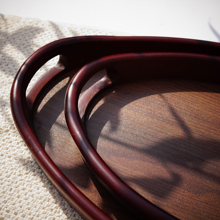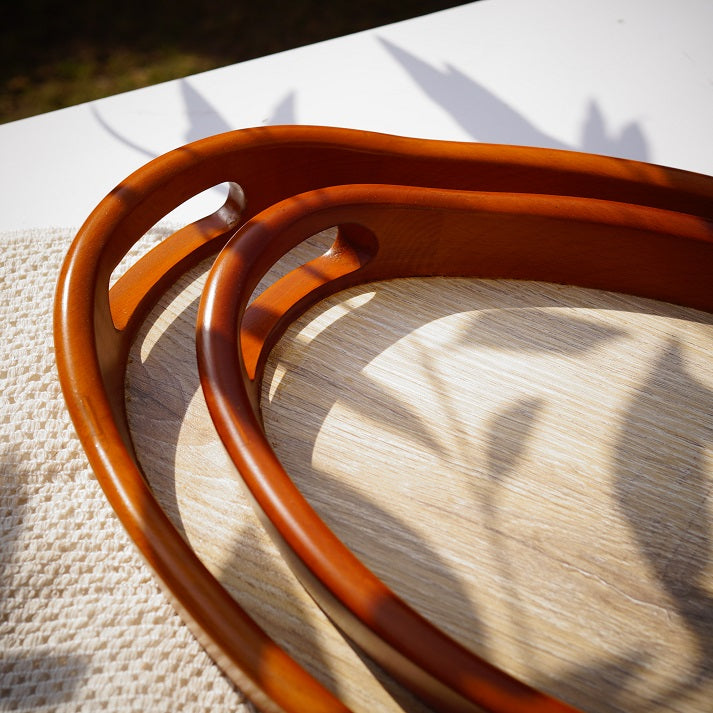 ارتقِ بتجربة تقديم الطعام مع طقم صواني توينوود، ثنائي متناغم مصنوع من خشب طبيعي غني بألوانه الزاهية. يتميز بحواف منحنية ناعمة ومقابض مدمجة، ويجمع بين العملية والأناقة الريفية. مثالي لصباحات القهوة، أو عشاء دافئ، أو لديكور أنيق.