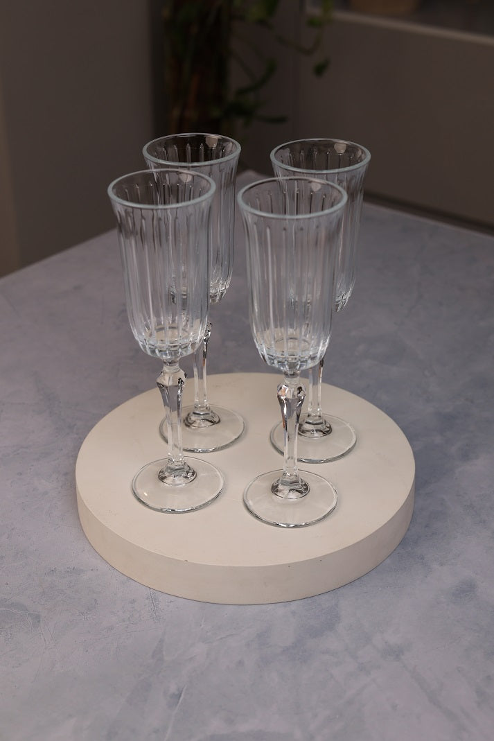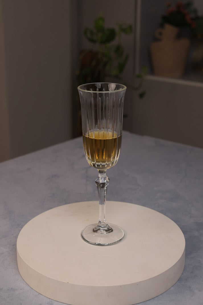 Featuring vertical ribbing and a refined stem, this set brings old-world charm with modern clarity. Perfect for sparkling drinks, making every pour feel extra special.
