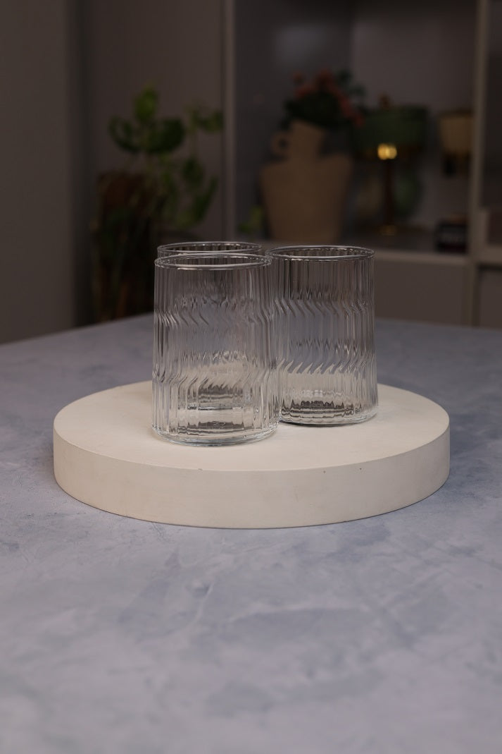 A Smaller version of the WaveLine design, offering sleek vertical waves that catch the light beautifully. Perfect for refreshing drinks and modern dining tables.