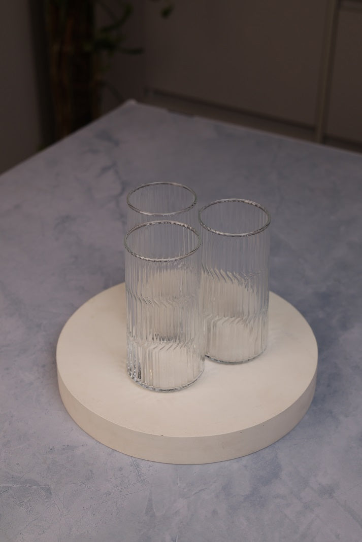 A Taller version of the WaveLine design, offering sleek vertical waves that catch the light beautifully. Perfect for refreshing drinks and modern dining tables.