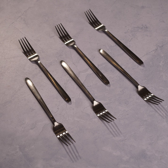 Classic stainless steel forks with Silver engraved handles. Designed for everyday dining yet luxurious enough for special occasions.