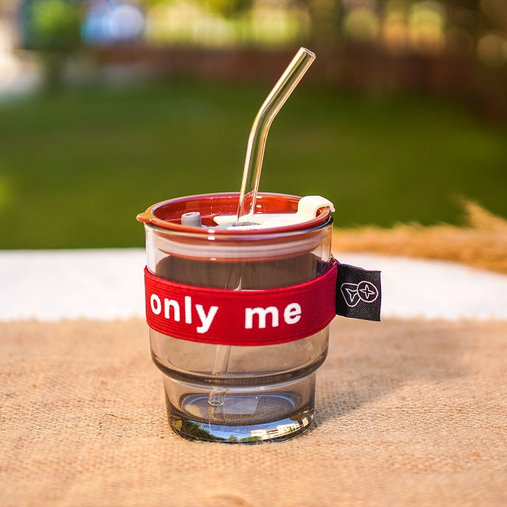 Bold, playful, and portable. This short clear tumbler with a steel straw and “only me” strap is your go-to for iced drinks with personality. Ideal for solo sips and aesthetic shots.