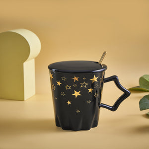 - The mug comes with a matching black lid and a uniquely designed comfortable handle.