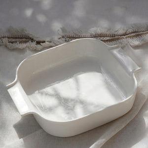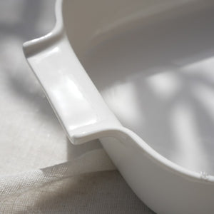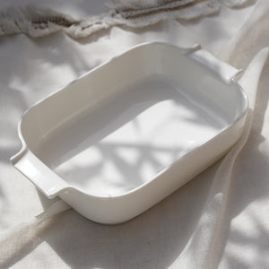 A deeper rectangular ceramic baking tray designed for generous portions, making it perfect for layered dishes and oven bakes.
