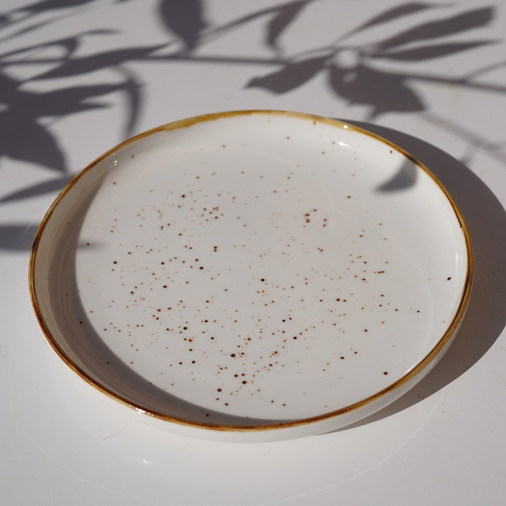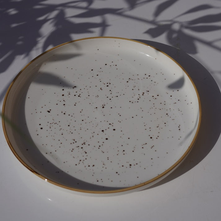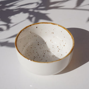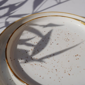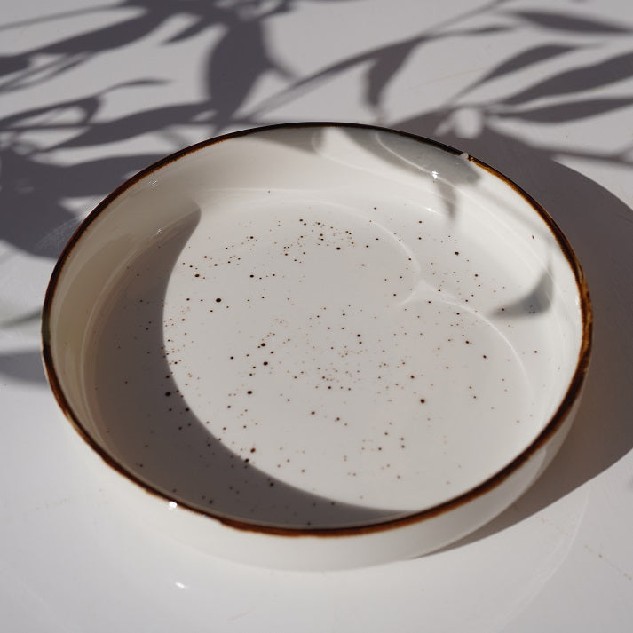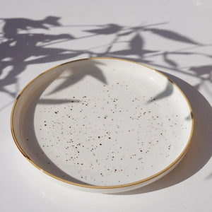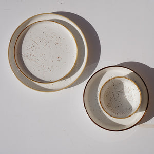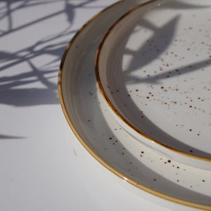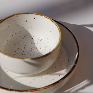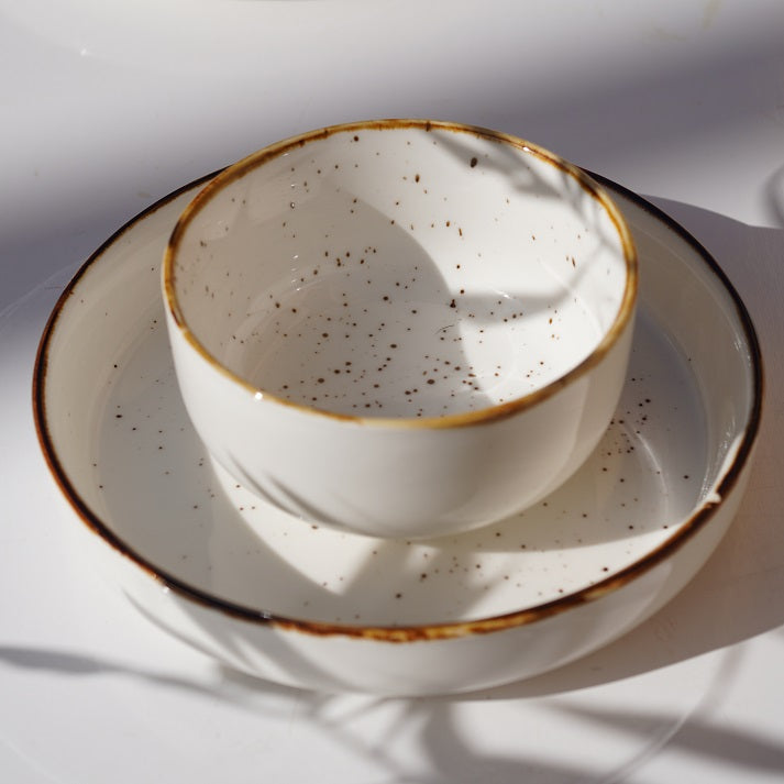 A minimal yet warm ceramic set featuring soft speckled detailing and a hand-finished rim. Perfect for everyday dining with a touch of understated elegance.