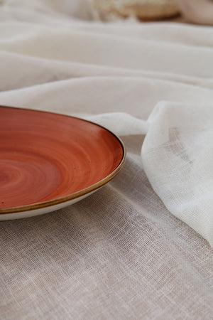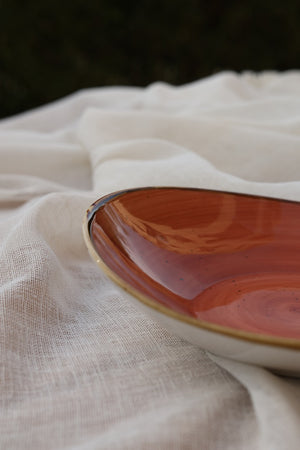 Soft oval shape with a smooth gradient terracotta finish. Works beautifully for appetizers, sides, seafood, desserts or fruit displays. A warm, inviting table highlight.