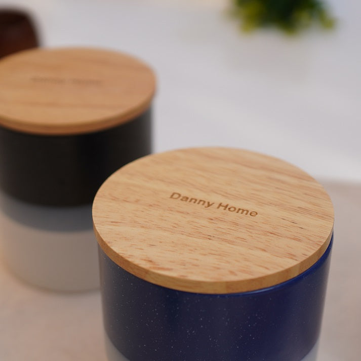 This sleek and minimal trio features a gradient design in black, navy, and soft blue. The tall cylindrical shape and bamboo lids make them ideal for pasta, grains, or dry ingredients in a stylish modern kitchen.