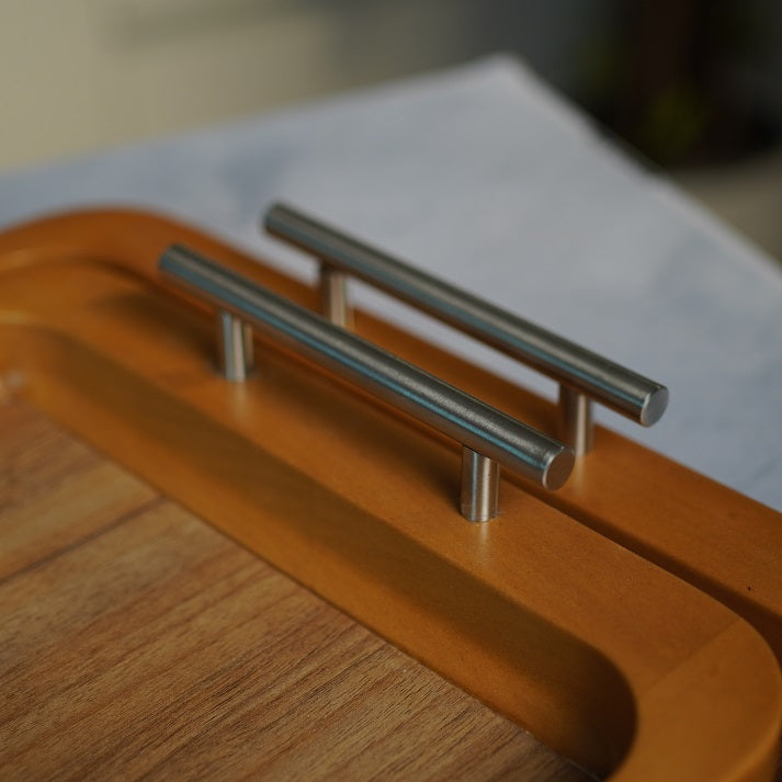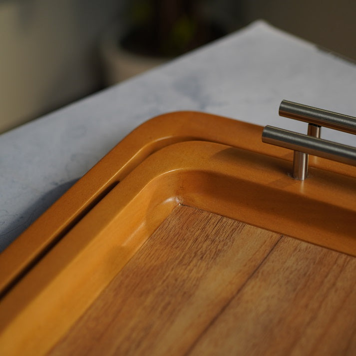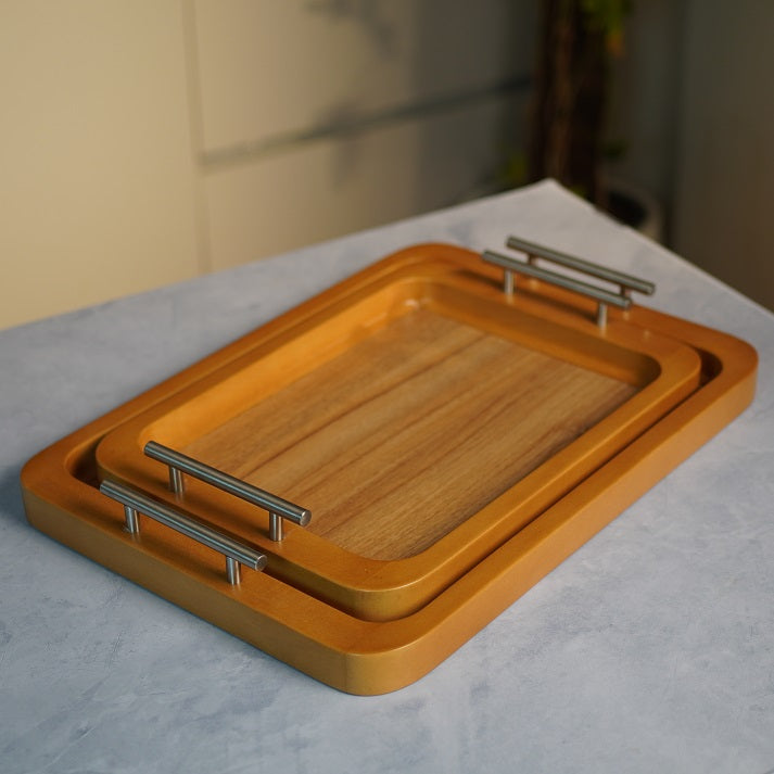 Maple Steel Handle Wooden Tray Set (2 pieces)