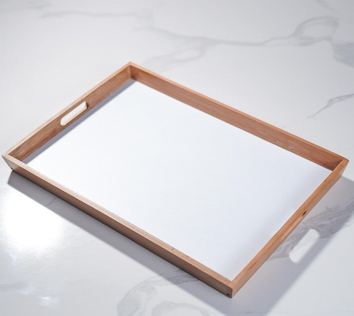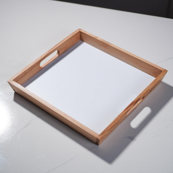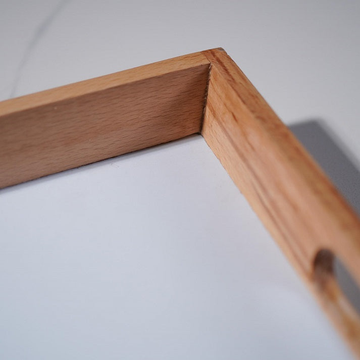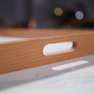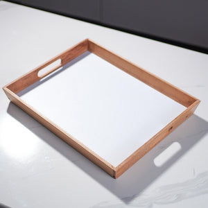 Elevate your hosting game with the Soleil Serve Tray – a sleek blend of natural wood and minimalist white. Perfect for breakfast in bed, coffee setups, or elegant evening snacks, its clean design and sturdy frame make it both stylish and practical. With built-in side handles for easy carrying, this tray adds a touch of modern charm to any table or countertop.