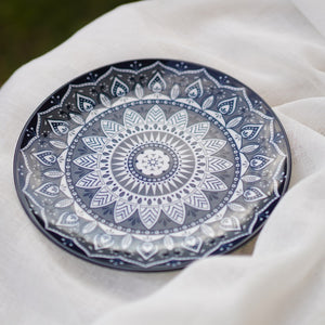 The Indigo Bloom Dessert Plate brings coastal serenity to your table. Use it for desserts, starters, or light bites — its navy accents and circular motif make it irresistibly chic.