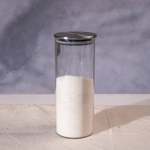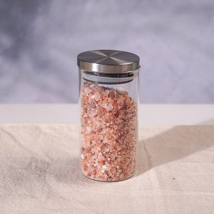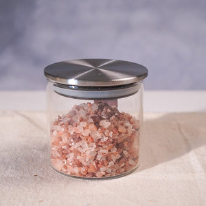 Modern kitchens. With a clear glass body and brushed steel lid, it’s the perfect home for Himalayan salt, spices, or grains. Stylishly simple and built to keep freshness locked in.