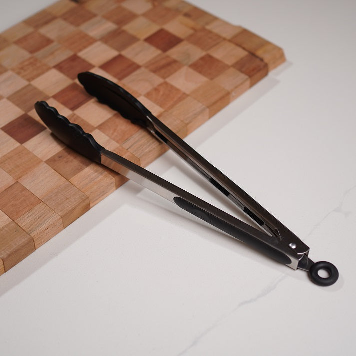 Lock, lift, and serve with ease These stainless steel tongs feature silicone tips and a lockable handle for safe, mess-free cooking.