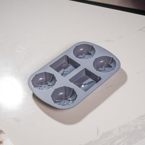A flexible silicone mold with floral and square cavities — perfect for baking mini cakes, chocolates, or desserts with a creative twist. Easy release, effortless cleanup!
