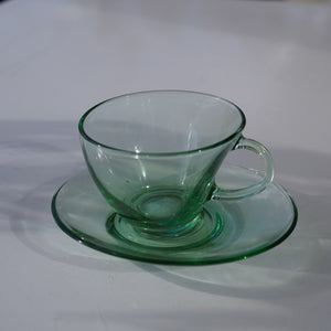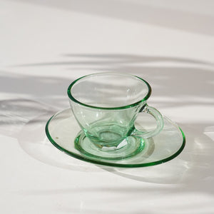 Lightweight and elegant, this green glass tea or coffee cup and saucer set offers a calm, refined tea experience. Perfect for afternoon tea, coffee moments, or aesthetic kitchen styling.