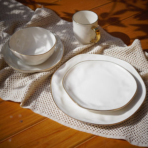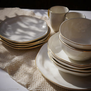 An elegant dinner set crafted to elevate everyday dining. Featuring softly sculpted shapes and refined gold detailing, this set brings a quiet sense of luxury to your table without feeling overdone. Perfect for hosting, special occasions, or simply turning daily meals into something more intentional. A timeless choice that blends classic elegance with modern simplicity.