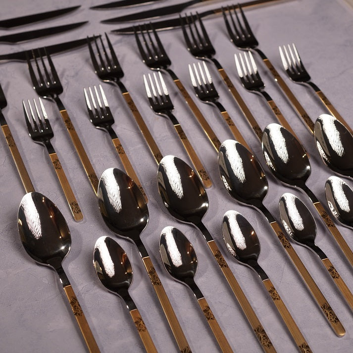 Bring timeless sophistication to your dining table with the golden Grace Cutlery Bundle This complete flatware collection includes everything you need for both everyday meals and special gatherings big forks, small forks, big spoons, small spoons, and knives — designed to serve with grace and style.