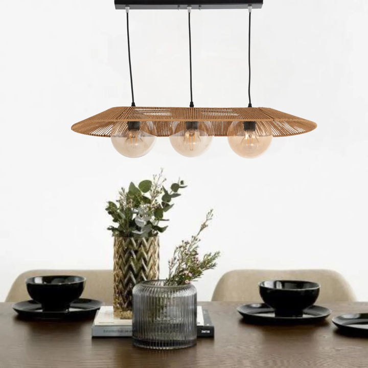 Modern and inviting, the Horizon Trio Lamp combines three bulbs under a sleek woven frame for balanced light and style. Perfect for kitchens or dining rooms, it’s the ultimate mix of natural warmth and modern minimalism.