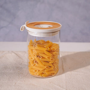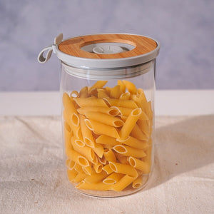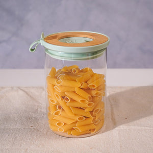 Fresh, simple, and smart this airtight jar with a bamboo-mint lid keeps pasta, grains, or snacks neatly sealed and beautifully displayed.