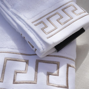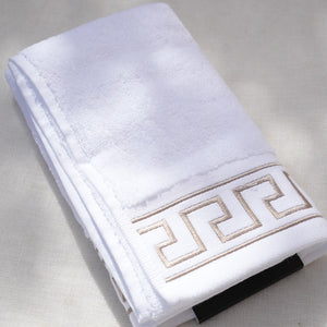 A soft, high-absorbency towel with an elegant embroidered border, designed to bring a touch of luxury to your daily routine.