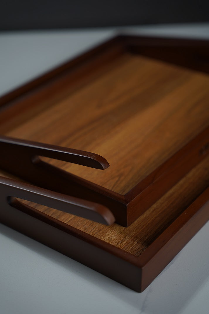 These beautifully crafted wooden trays combine natural elegance with practical design. Perfect for serving or organizing, their sturdy handles and timeless appeal make them a versatile addition to any home.