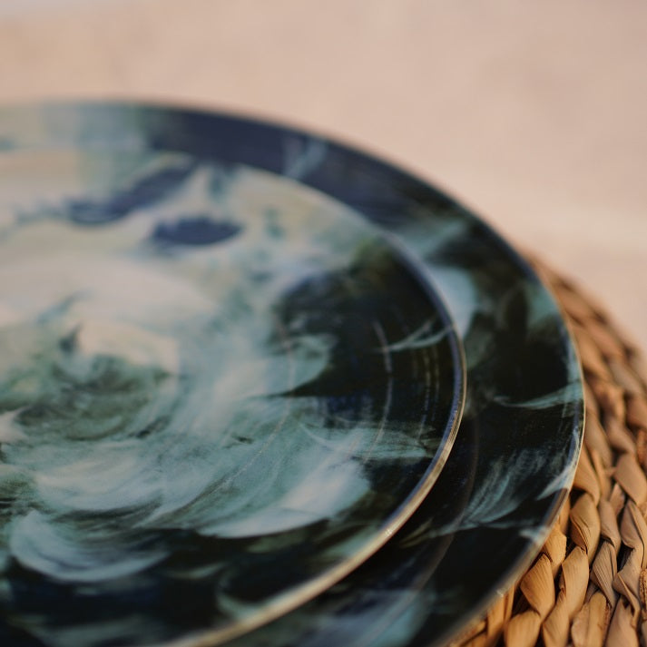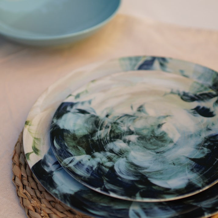 Dive into tranquility with the Ocean Mist Dinner Set — a dreamy blend of swirling blue and seafoam tones that capture the beauty of ocean waves. Its artistic, water-inspired design adds a refreshing touch to your dining table, perfect for both everyday meals and coastal-inspired gatherings.