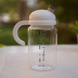 A glass oil dispenser with measurement markers and a leak-proof spout, combining function and elegance for accurate pouring.