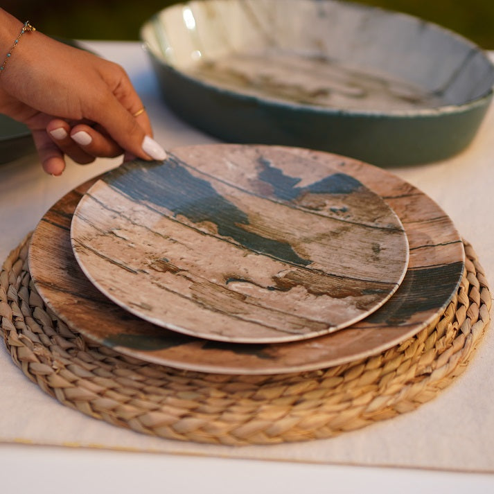Bring the beauty of weathered wood to your table with the Rustic Drift Dinner Set — a design inspired by seaside textures and earthy tones. Each plate tells a story of time and tide, blending rustic charm with modern craftsmanship. Perfect for cozy dinners or alfresco gatherings.