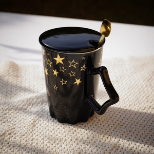 - The mug comes with a matching black lid and a uniquely designed comfortable handle.
