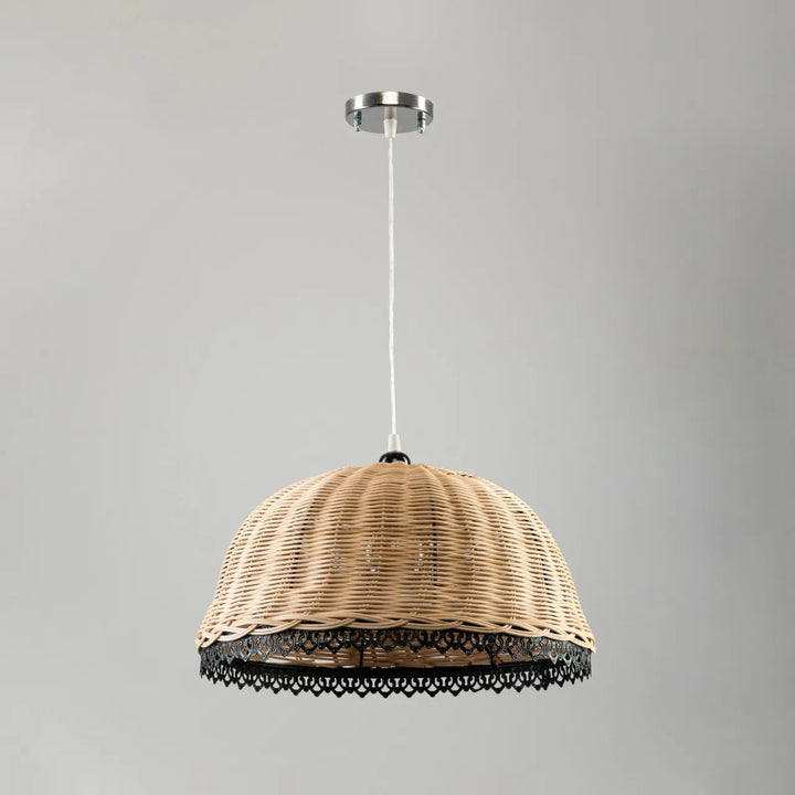 Timeless and textural — the Woven Grace Pendant blends handwoven rattan with a delicate black lace edge. It brings a warm, boho charm to any dining or living space, casting soft light that feels both rustic and refined.